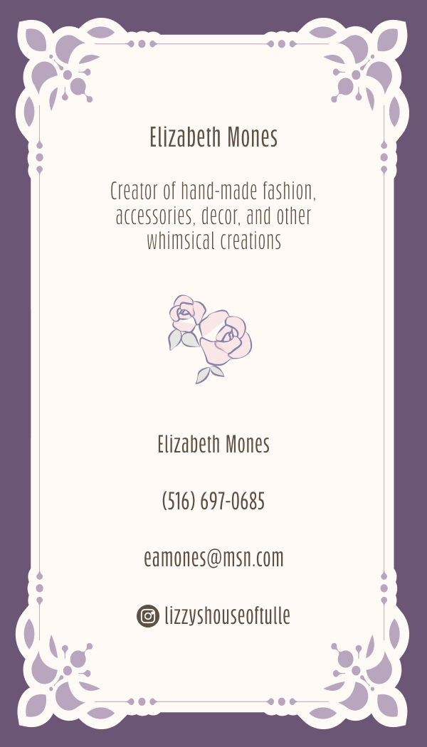 ◄ Freelance Work Lizzy’s House of Tulle - Brand Package INITIAL MEETING Project Scope Logo & Process Work Business Card Thank You Note Market Booth Banner Market A-Frame Social Media - Instagram Launch & Maintenance